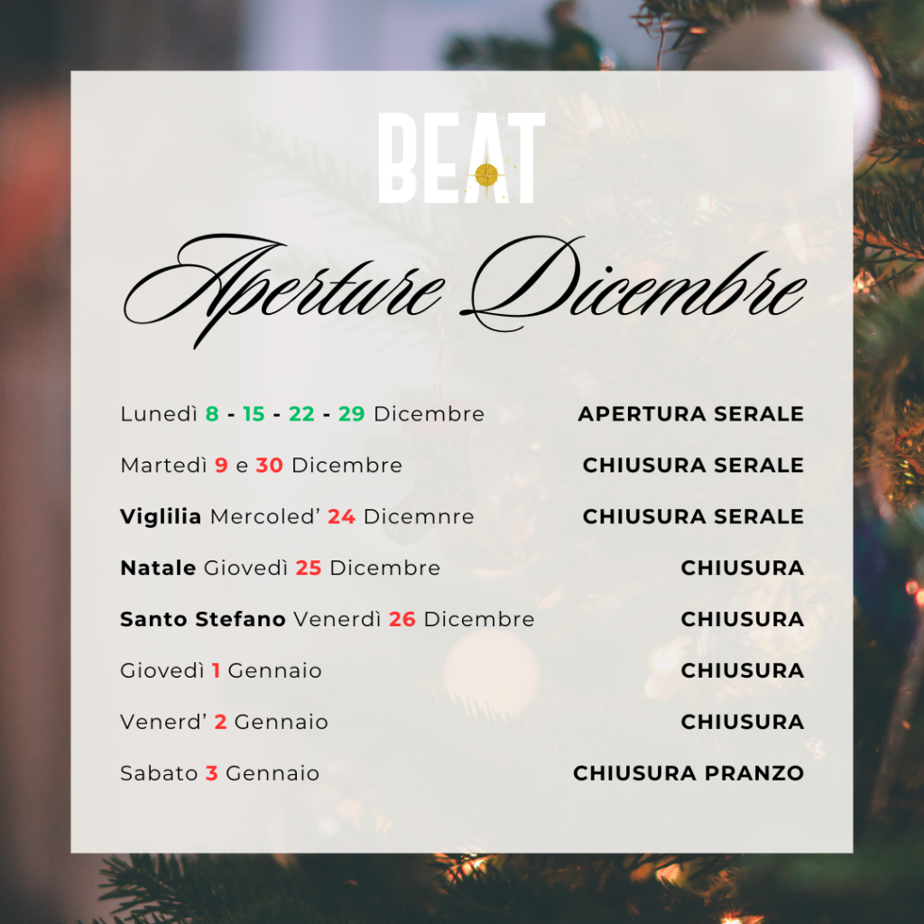 Il 31 dicembre vivi una serata indimenticabile al BEAT di Arcore, tra ottimo cibo, musica dal vivo, animazione e un’atmosfera di festa che ti accompagnerà fino al nuovo anno! SCOPRI I MENU